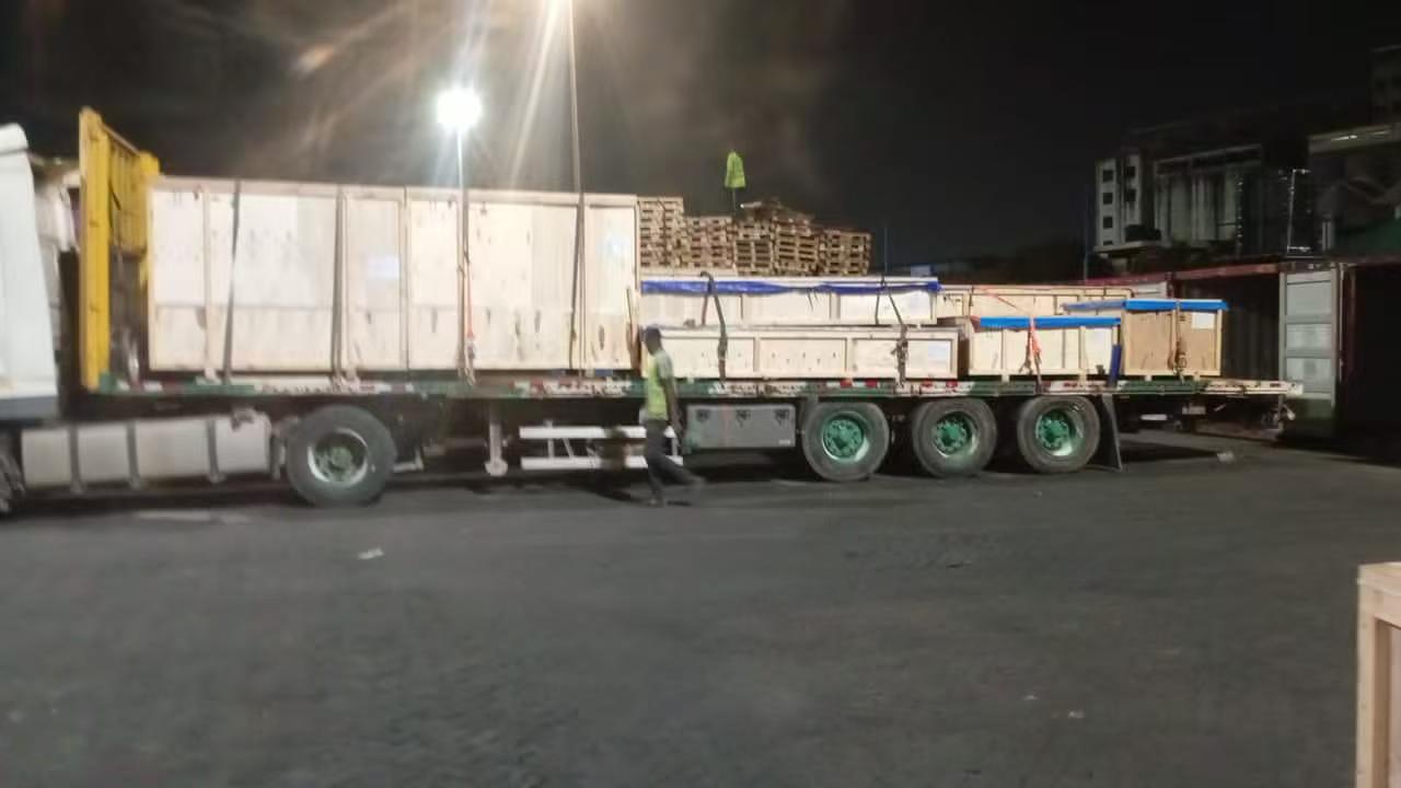 По прибытии товара в порт Тема, Гана, наш Профессиональная команда быстро завершила прием и проверку. Для большой мощности оборудования, мы провели полный процесс крепления и армирования, чтобы предотвратить перемещение при наземной транспортировке. Весь товар был полностью покрыт водонепроницаемые ламинированные брезенты, устойчивые к суровым погодным условиям и влаге. На каждом транспортном средстве была установлена стандартная квитанция об оплате. Полная отслеживаемость и проверка процесса.